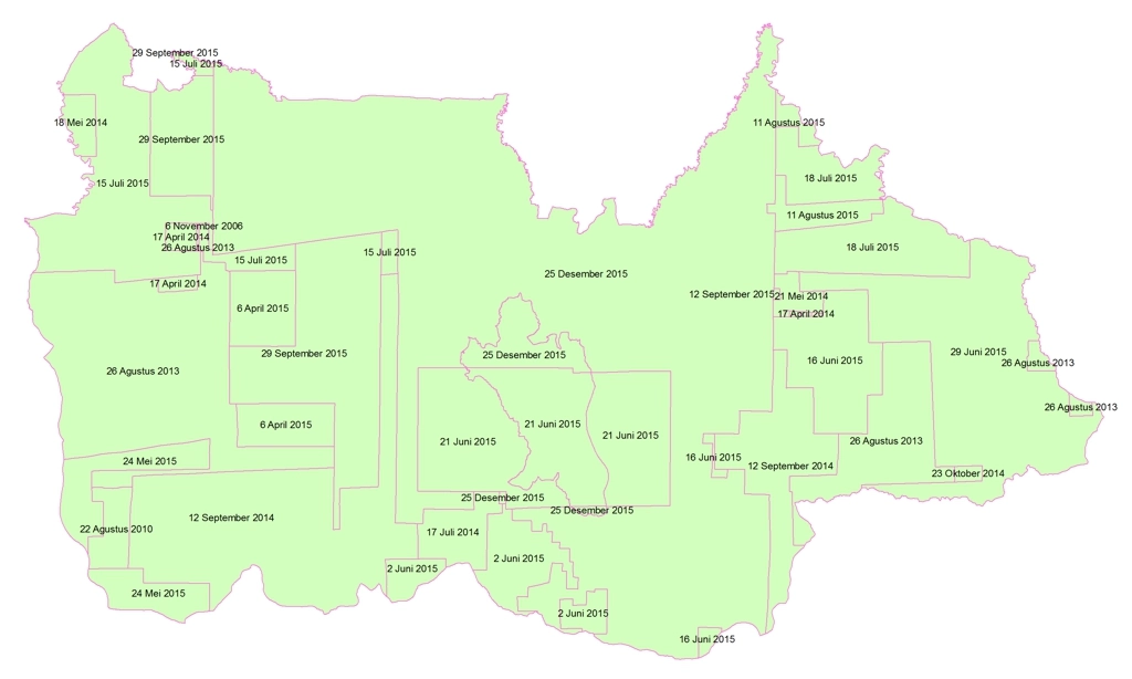 Citra diolah dan diproses dari mozaic tile citra satelit Google perbesaran 20x dengan variasi Sumber Satelit Citra sebagai berikut :